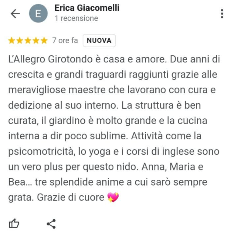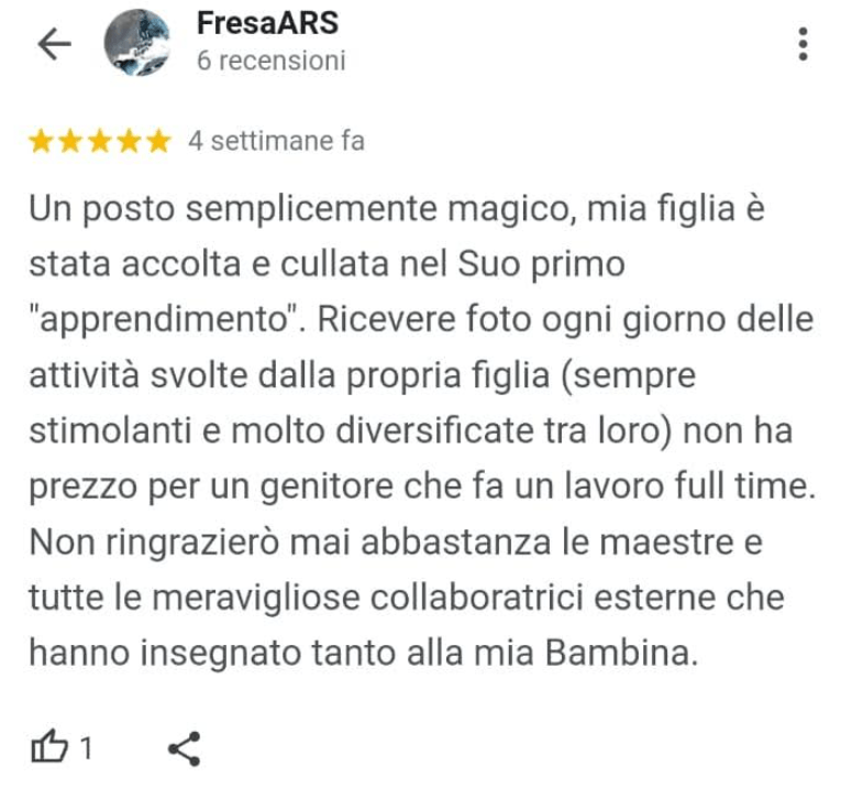 E' un ambiente sicuro, protetto dove, a partire dai bisogni dei bambini, le educatrici con amorevoli gesti di cura, li sostengono nelle loro fasi di crescita.